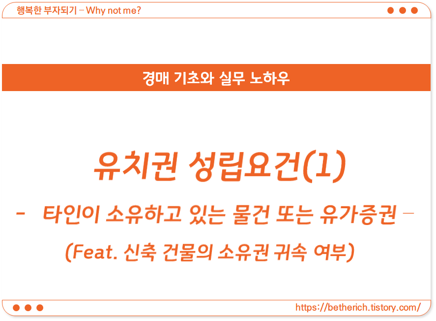 | 유치권 성립요건(2) - 유치물은 물건 또는 유가증권(Feat. 건물로 인정되지 않는 토지 정착물의 유치권 성립 여부) (0) | 2022.04.04 |