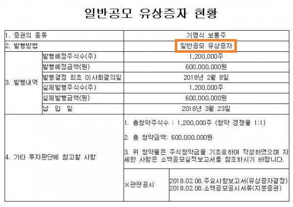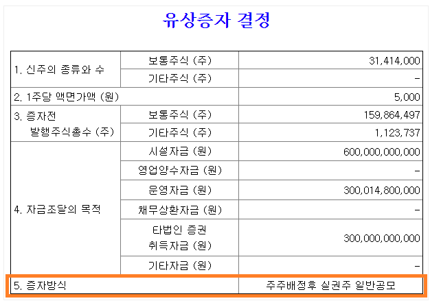 보통 이런 식으로 유상증자 공고가 뜹니다.