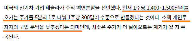 테슬라도 지난 2020년 8월 5대 1 액면분할을 실시했다고 합니다.