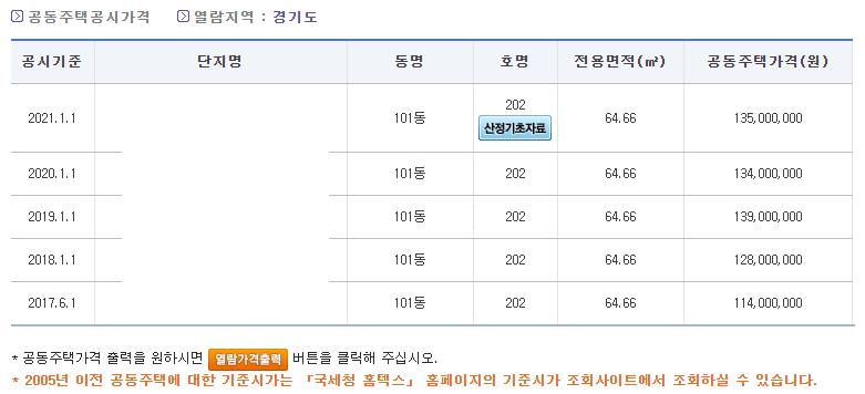 한국부동산원 홈페이지를 통해 나온 공시가격(공동주택가격)은 다음과 같습니다.