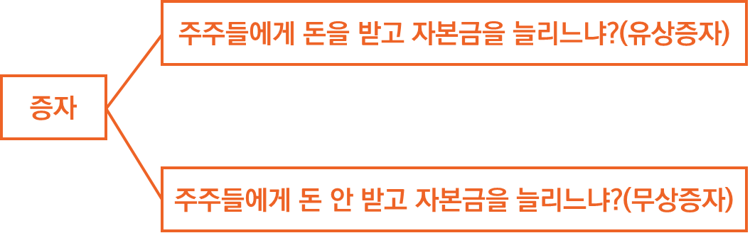 기업을 경영하다 보면 여러 가지 이유로 인해 자본금을 늘려야 하는 상황이 필요하고, 이를 '증자'라는 행위를 통해 해결하곤 합니다. 그리고 그 방법에 따라 위와 같이 '유상증자', '무상증자'로 분류할 수 있습니다.