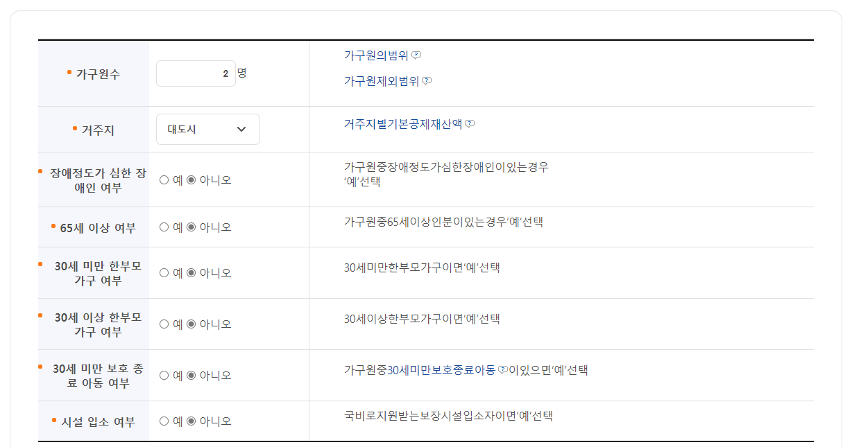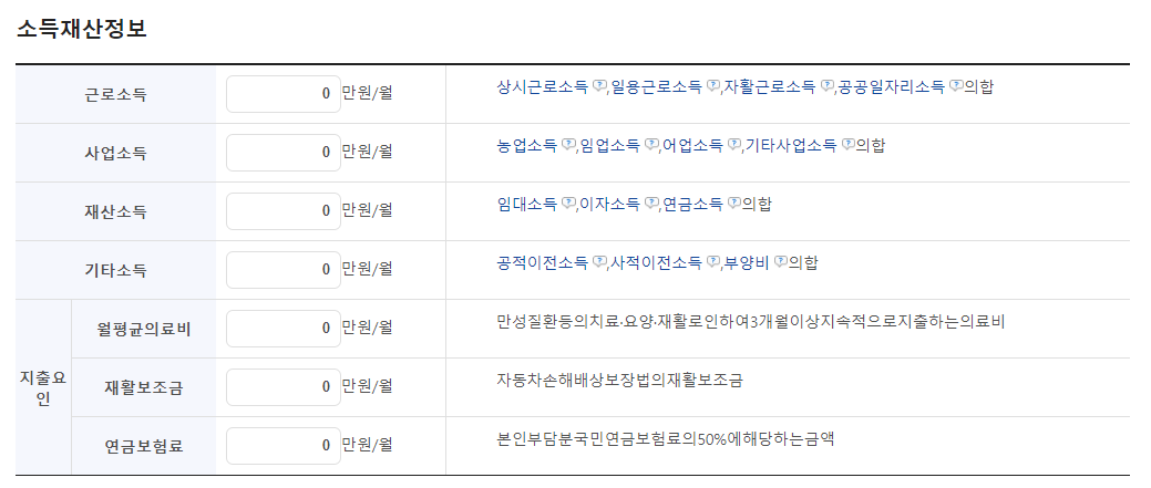 단순하게 근로소득, 사업소득 이런 것으로만 계산하는 게 아니라 재산 같은 것도 입력해야 하는 것 같습니다. 꽤나 복잡합니다.