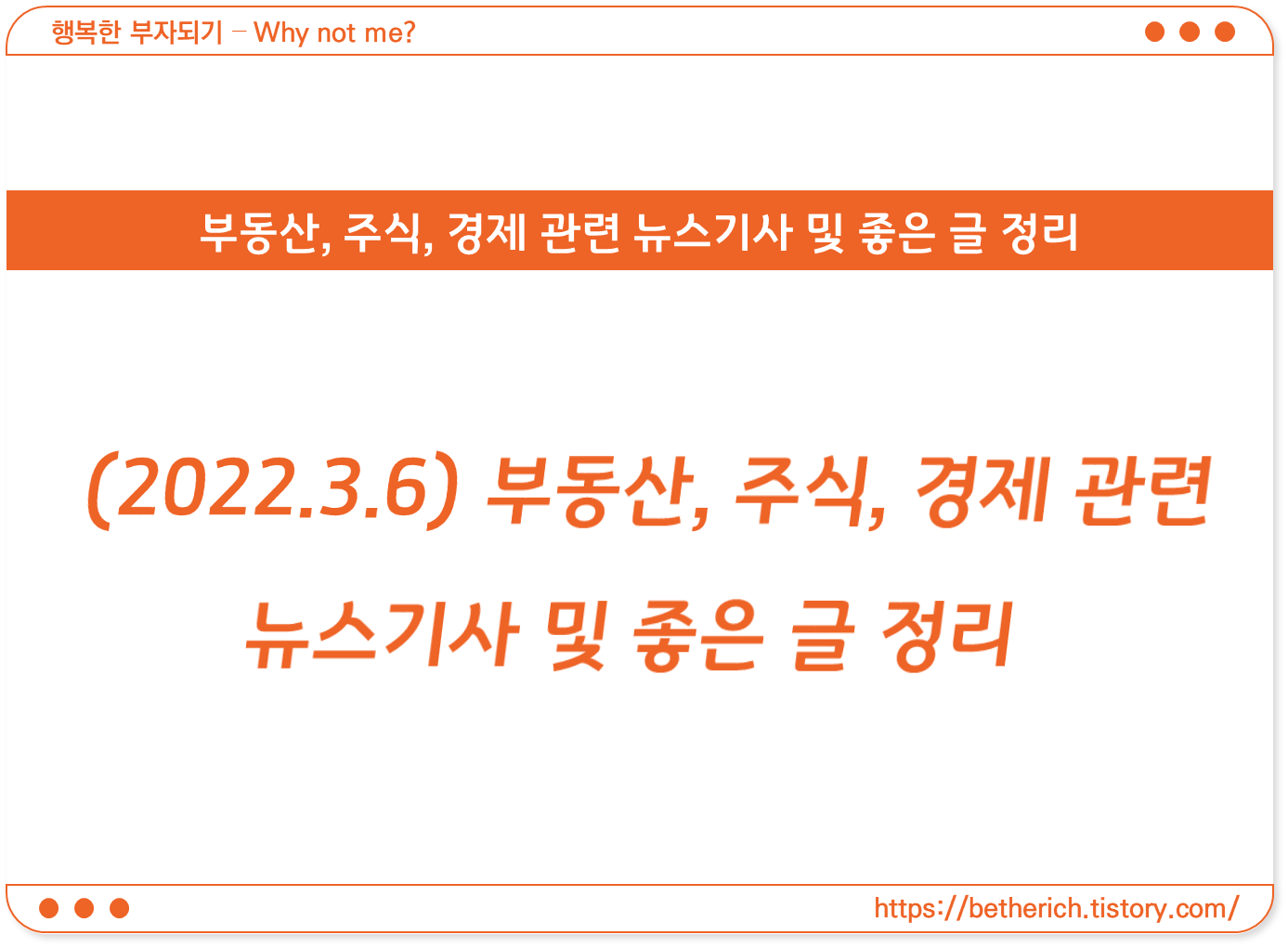 | (2022.3.7) 부동산, 주식, 경제 관련 뉴스기사 및 좋은 글 정리 (1) | 2022.03.07 |