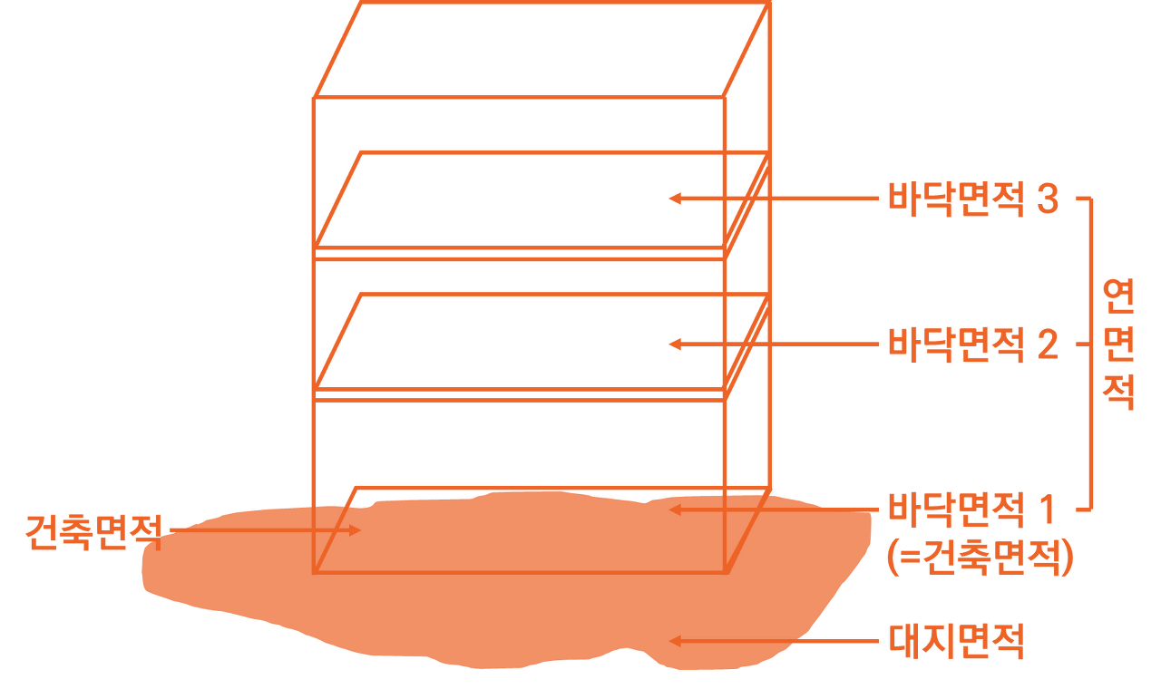 3. 바닥면적 : 건축물 각 층 바닥의 크기(넓이)