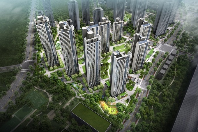 건폐율이 낮은 아파트의 예시사진입니다. 동간거리가 넓으니 쾌적한 느낌이 듭니다.