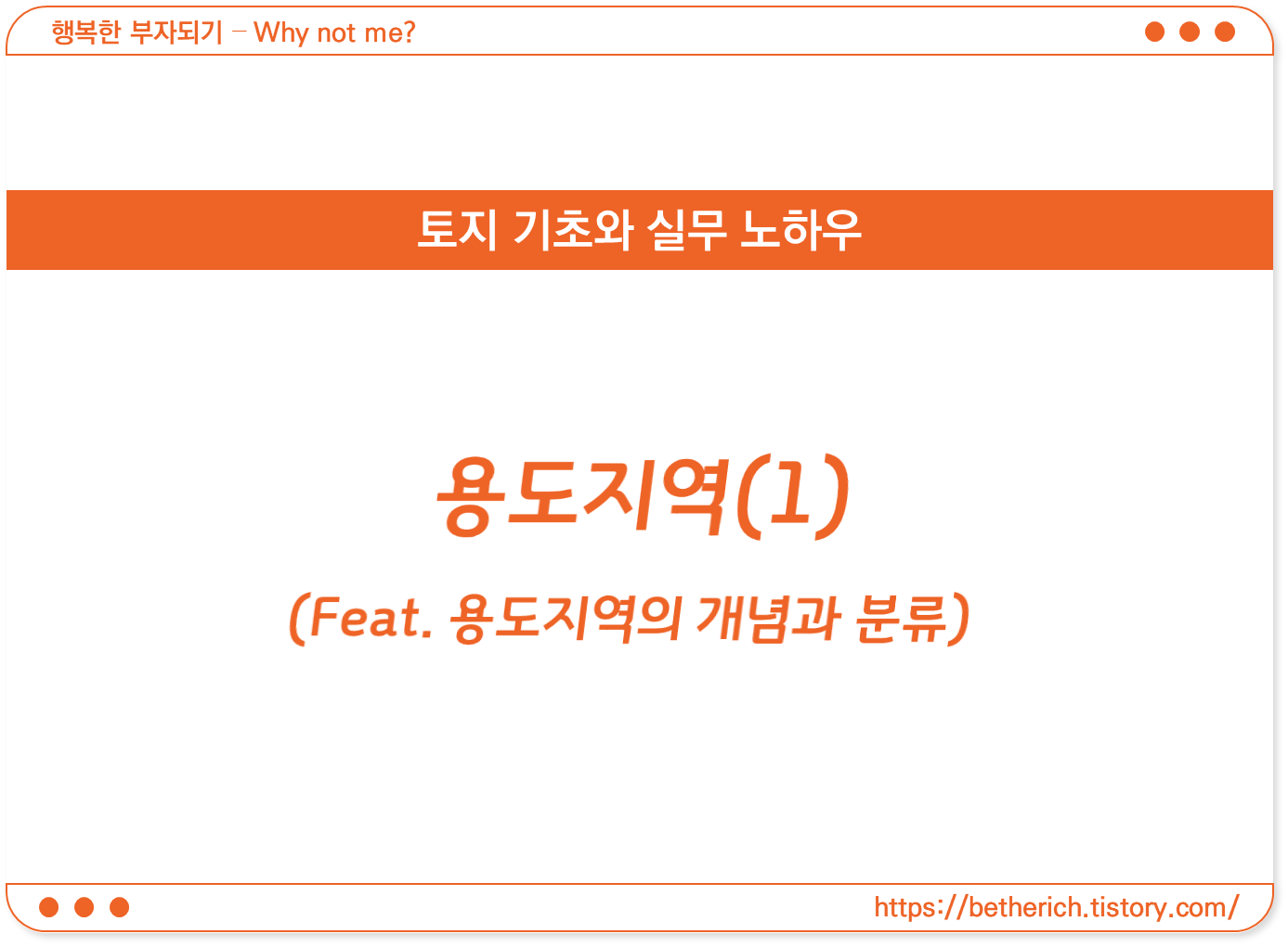 부동산 관련 기사들을 읽다 보면 주거지역이니, 상업지역이니 하는 말들이 심심치 않게 등장합니다. 이게 뭔지 궁금해서 찾아보다 보니 크게 '용도지역'이라는 단어를 접하게 되었습니다. '용도'라는 말을 사전에서 찾아보면 '쓰이는 길 또는 쓰이는 곳'으로 나와 있습니다. '땅의 쓰임'을 가지고 이야기하는 것 같기는 한데 지역은 뭐고 지구는 또 뭐고 구역은 또 뭔지 복잡합니다. 때문에 해당 내용에 대하여 한번 공부해 보고자 합니다.