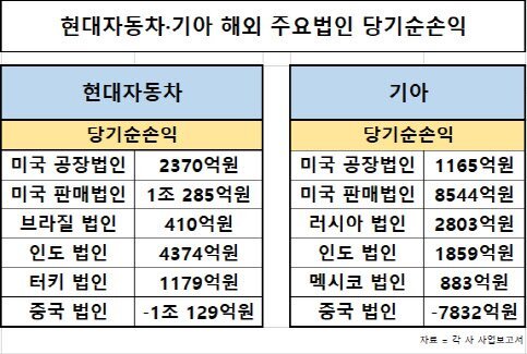 현대차·기아, 中 제외한 전 해외법인서 흑자 기록