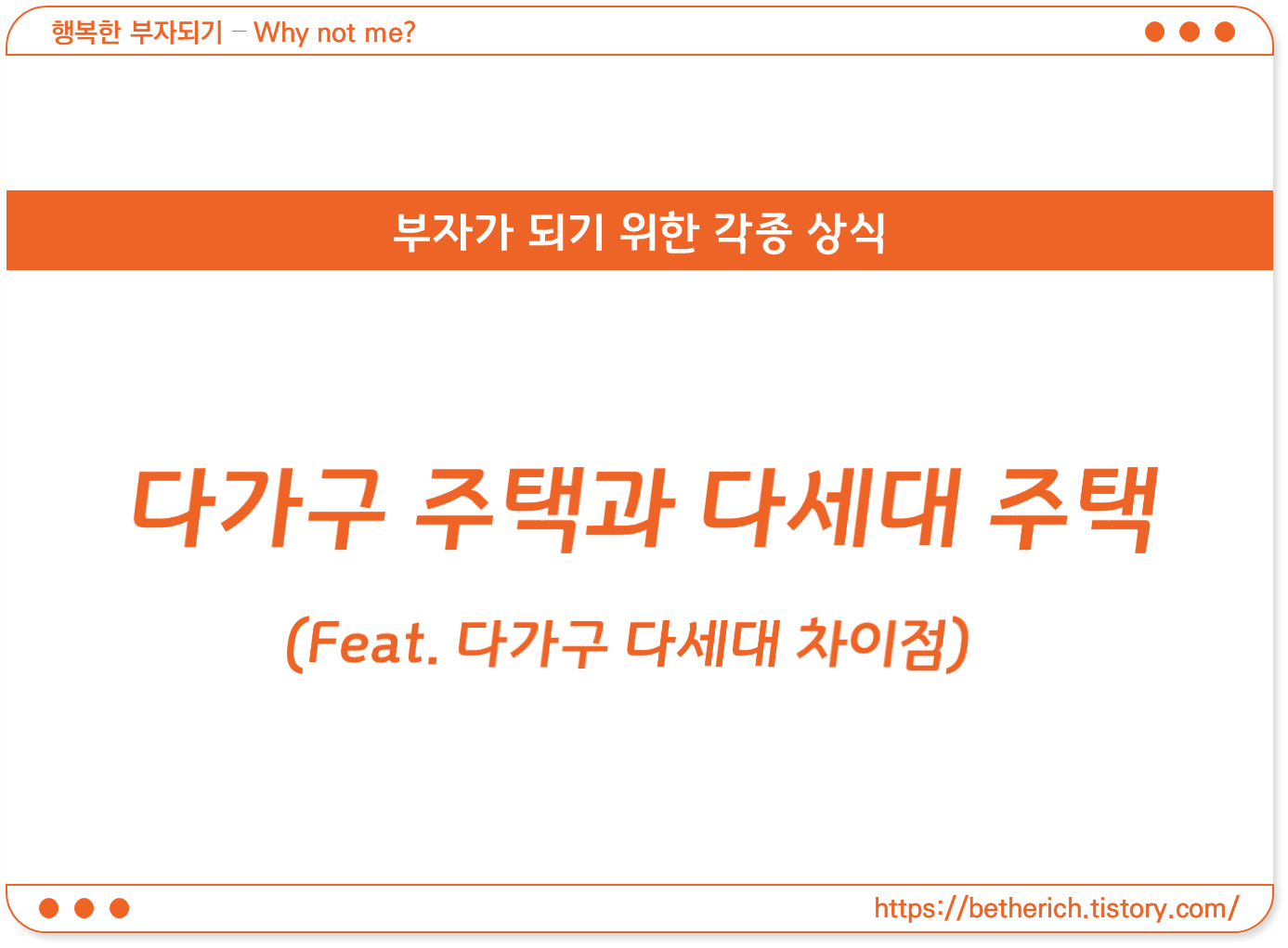 부동산 공부를 하면서 다가구 주택과 다세대 주택이라는 용어를 자주 접하고는 합니다. 들을 때는 이해가 가지만 용어가 비슷하기 때문에 항상 헷갈리고는 합니다. 특히나 외관상으로도 거의 비슷하게 생겼기 때문에 육안으로만 볼 때는 구분하기 쉽지 않습니다. 때문에 해당 용어에 대하여 한 번 정리해 보겠습니다.