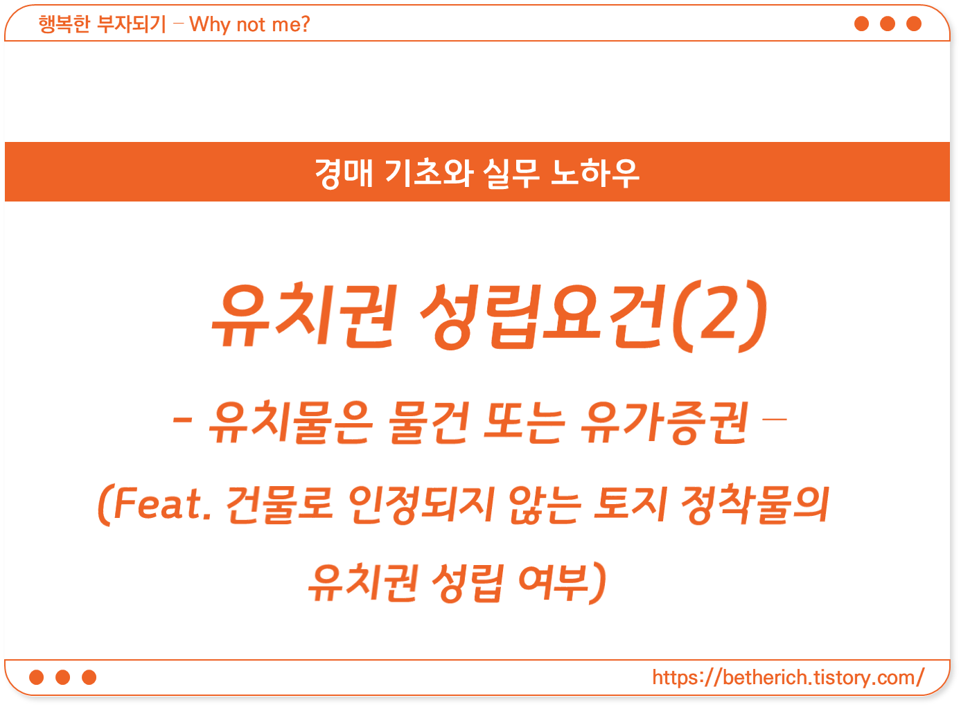 앞에서 유치권의 특성과 취지, 그리고 유치권의 악용 가능성 등에 대하여 공부했습니다.(아래 링크 참고) 유치권 개념과 사례 - 유치권이란? 가끔 지나다니다 보면 꽤나 흉물스럽게(?) 생긴