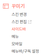 그리고 [사이드바]에 있는 내용들도 가급적 지워주는 것을 추천하는데 불필요하다고 생각하는 부분은 최대한 없애주는 게 속도를 빠르게 하는 방법이라고 합니다.