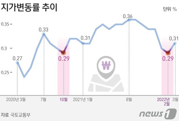 눈여겨볼 점은 앞서 발표한 전국 지가변동률 지표가 비슷한 움직임을 보였다는 사실이다.