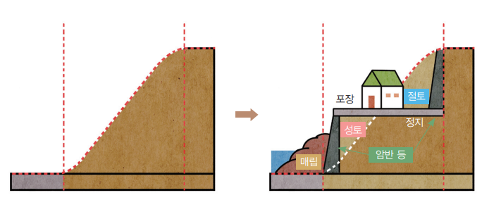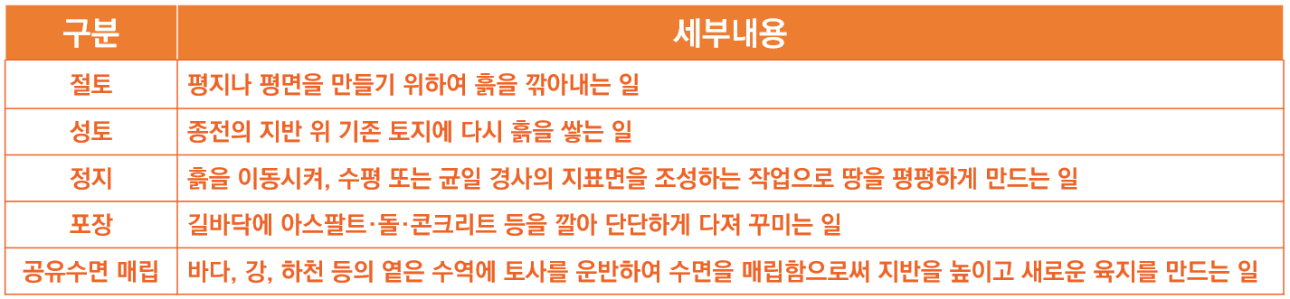 일단 여기서 잘 모르는 말은 '형질변경' 입니다. 형질변경이란 건축물을 짓지 않고 절토, 성토, 정지, 포장, 공유수면 매립 등의 방법으로 토지의 형상(모양)을 변경하는 것을 의미한다고 합니다. 세부 용어는 다음과 같습니다.