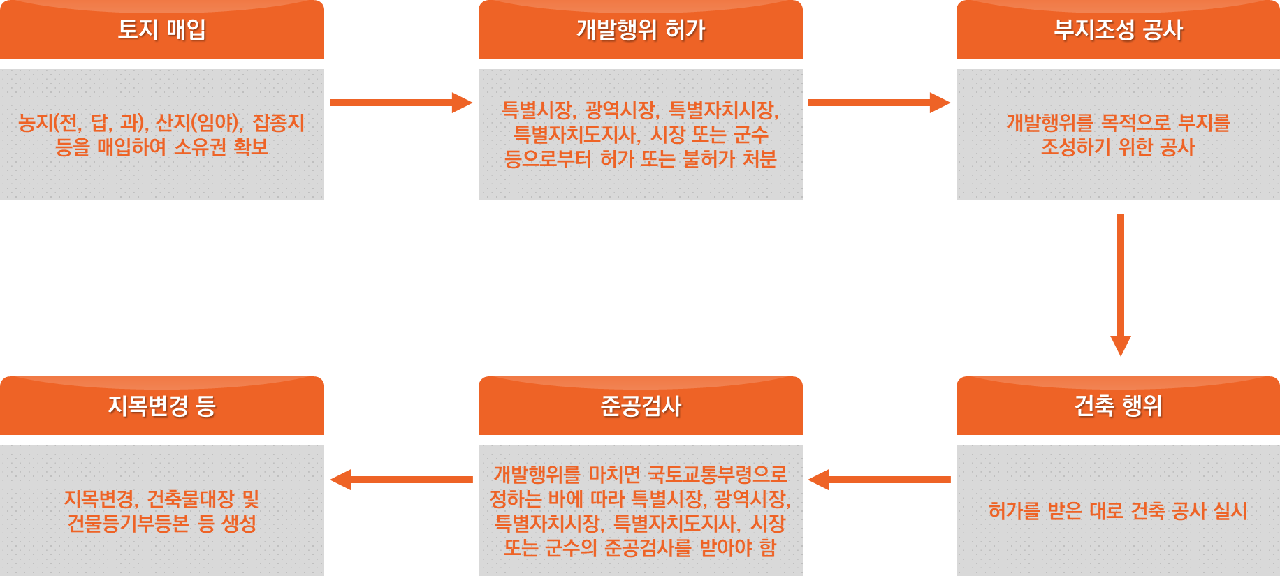 즉, 건축물을 건축하여 지목 변경까지 하는 단계를 그림으로 요약하면 다음과 같습니다.