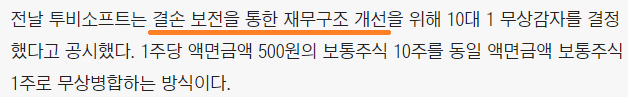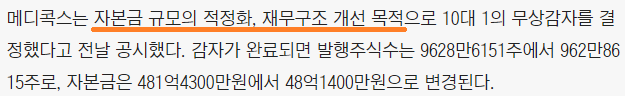 '결손 보전', '자본금 규모의 적정화', '재무구조 개선' 등의 말이 나옵니다. 꽤나 원론적인 이유 같습니다. 보다 자세히 한 번 알아보겠습니다.