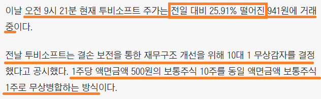 [특징주] 투비소프트, 10대 1 무상감자 결정 ‘급락’