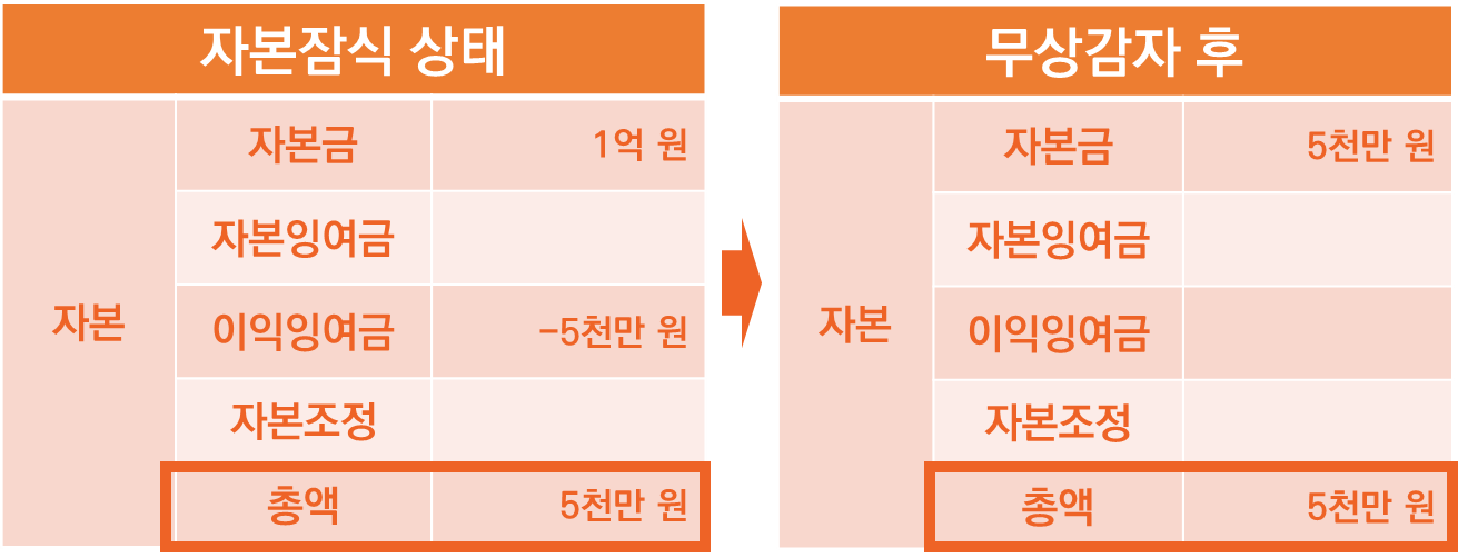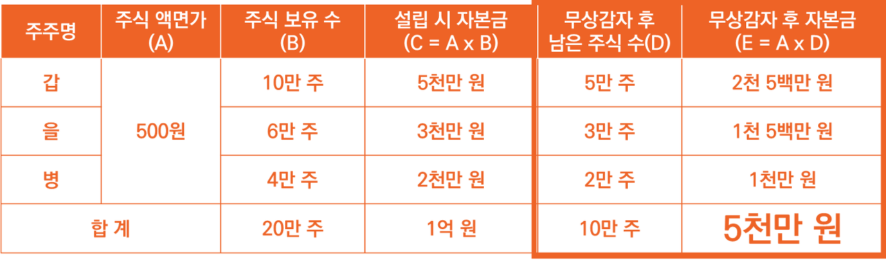 하지만 이렇게 무상감자를 통해 자본금을 5천만 원으로 줄일 경우,