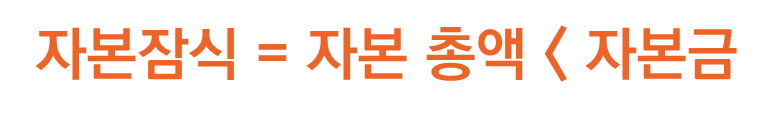 그리고 이걸 조금 더 전문적으로 표현하면 자본 총액이 자본금보다 작은 상태를 자본잠식이라고 하고, 그림으로 표현하면 이렇게 됩니다.