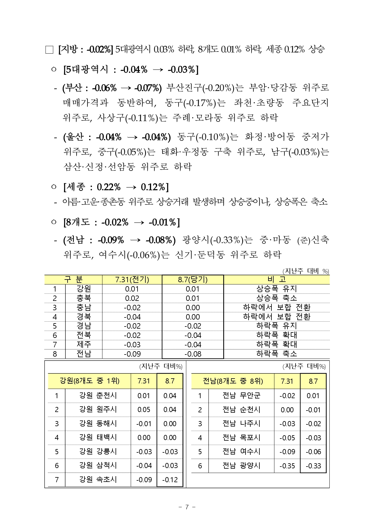 | 한국부동산원 주간아파트 가격동향 (2023.07.31 기준) (0) | 2023.08.04 |