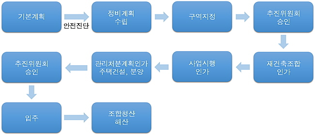 기본계획, 안전진단, 구역지정, 추진위원회, 조합인가, 사업시행인가, 관리처분계획인가 등 무슨 말인지 잘 모르겠습니다. 일단은 저렇게 시행된다고 하니 그런가보다 합니다.