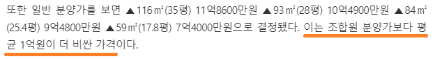 조합원에게 새 아파트를 분양할 때 분양가격 기준은 '조합원분양가'입니다. 조합원분양가는 일반적으로 일반 분양가, 주변 시세보다 낮습니다.