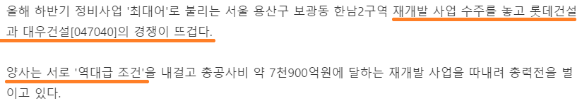 수천억 원의 공사비가 드는 큰 사업이다 보니 대형 건설사들 또한 눈에 불을 켜고 달려듭니다. 그리고 조합은 여러 건설사들로부터 입찰을 받고, 조합원들의 투표를 통해 최종적으로 시공사를 선정합니다.