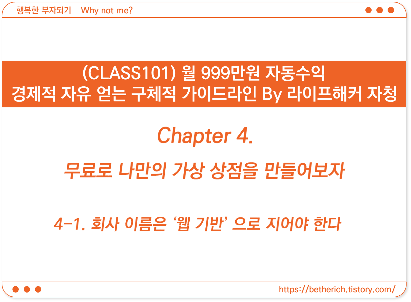 1. 회사명, 스토어명 등을 지을 때는 검색엔진에서 회사명 또는 스토어명 검색 시 흔한 키워드로 회사 이름을 가져갈 경우 다른 내용들이 검색되어 회사를 노출시키기 힘들고, 관련 후기나 칼럼 등을 깔아놓기 힘들다. 때문에 '웹기반'으로 회사명을 지어야 한다.